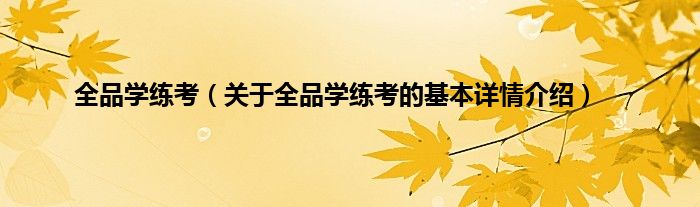 全品学练考(关于全品学练考的基本详情介绍)