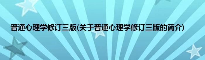 普通心理学修订三版(关于普通心理学修订三版的简介)