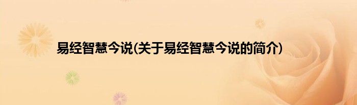 本文关于易经智慧今说的简介就讲解完毕,希望对大家有所帮助。
