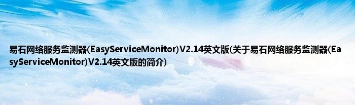 大家好,易石网络服务监测器,EasyServiceMonitorV2.14英文版,关于易石网络服务监测器,EasyServiceMonitorV2.14英文版的简介很多人还不知道,现在让我们一起来看看吧!