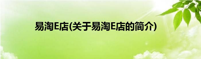 本文关于易淘E店的简介就讲解完毕,希望对大家有所帮助。