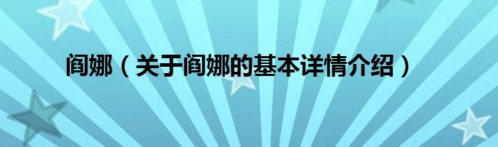 本文关于阎娜的基本详情介绍就讲解完毕,希望对大家有所帮助。