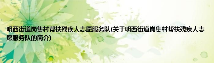 明西街道岗集村帮扶残疾人志愿服务队(关于明西街道岗集村帮扶残疾人志愿服务队的简介)