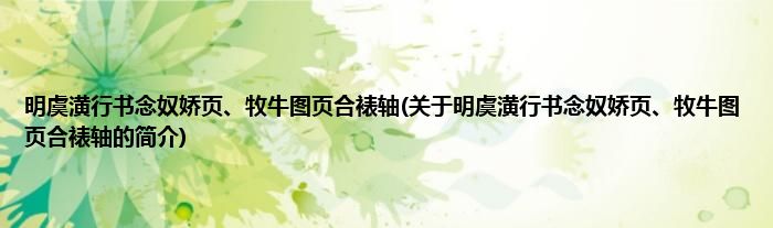 本文关于明虞潢行书念奴娇页、牧牛图页合裱轴的简介就讲解完毕,希望对大家有所帮助。