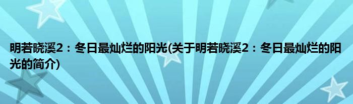 大家好,明若晓溪2:冬日最灿烂的阳光,关于明若晓溪2:冬日最灿烂的阳光的简介很多人还不知道,现在让我们一起来看看吧!
