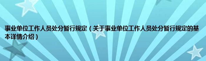 本文关于事业单位工作人员处分暂行规定的基本详情介绍就讲解完毕,希望对大家有所帮助。