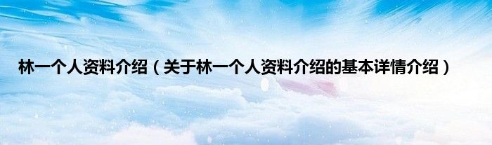 本文关于林一个人资料介绍的基本详情介绍就讲解完毕,希望对大家有所帮助。
