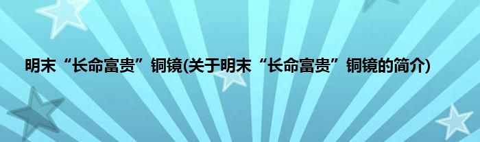 本文关于明末“长命富贵”铜镜的简介就讲解完毕,希望对大家有所帮助。