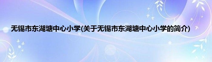 本文关于无锡市东湖塘中心小学的简介就讲解完毕,希望对大家有所帮助。