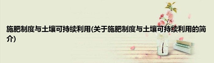 本文关于施肥制度与土壤可持续利用的简介就讲解完毕,希望对大家有所帮助。