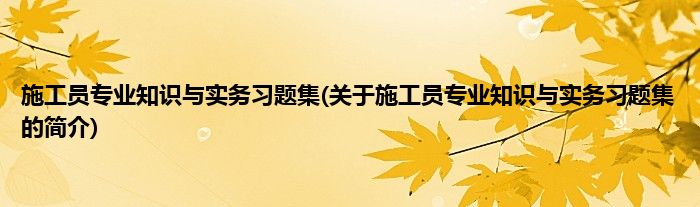 本文关于施工员专业知识与实务习题集的简介就讲解完毕,希望对大家有所帮助。