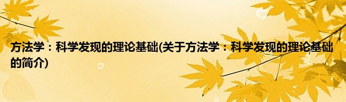 本文关于方法学:科学发现的理论基础的简介就讲解完毕,希望对大家有所帮助。