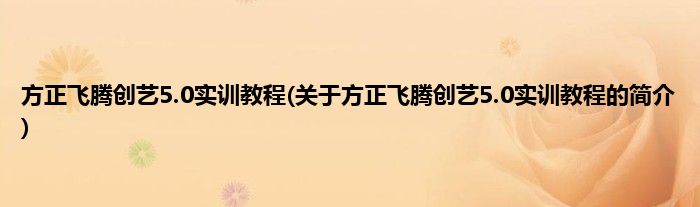 本文关于方正飞腾创艺5.0实训教程的简介就讲解完毕,希望对大家有所帮助。
