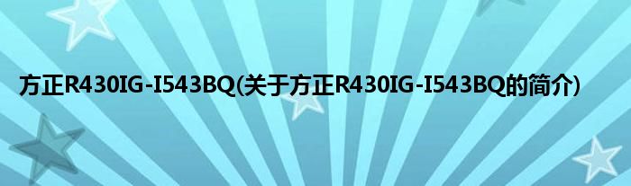 方正R430IG-I543BQ(关于方正R430IG-I543BQ的简介)
