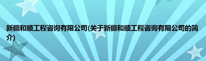 本文关于新疆和顺工程咨询有限公司的简介就讲解完毕,希望对大家有所帮助。