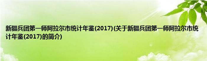 1、 《新疆兵团第一师阿拉尔市统计年鉴(2017)》是2017年6月中国统计出版社出版的图书。