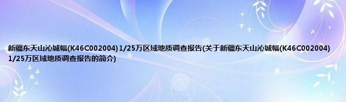 本文关于新疆东天山沁城幅(K46C002004)1/25万区域地质调查报告的简介就讲解完毕,希望对大家有所帮助。