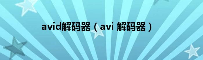 大家好,精选小编来为大家解答以上问题。avid解码器,avi 解码器很多人还不知道,现在让我们一起来看看吧!