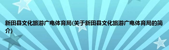 大家好,新田县文化旅游广电体育局,关于新田县文化旅游广电体育局的简介很多人还不知道,现在让我们一起来看看吧!