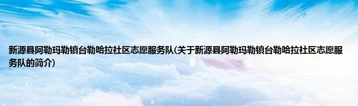 1、 新源县阿勒玛勒镇台勒哈拉社区志愿服务队是由伊犁州志愿者联合会领导下的志愿团体。