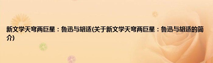 本文关于新文学天穹两巨星:鲁迅与胡适的简介就讲解完毕,希望对大家有所帮助。