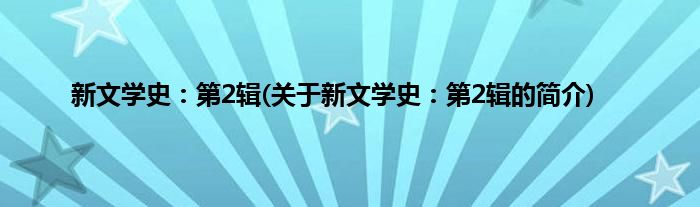 本文关于新文学史:第2辑的简介就讲解完毕,希望对大家有所帮助。