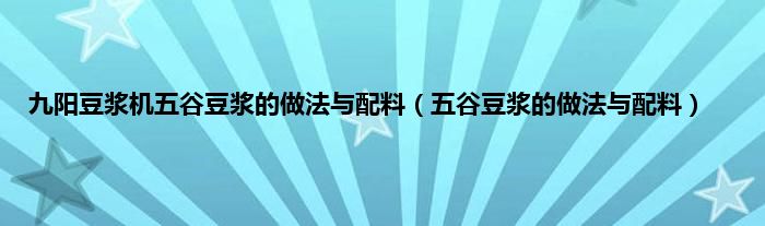 一、 五谷豆浆怎么做需要哪些配料