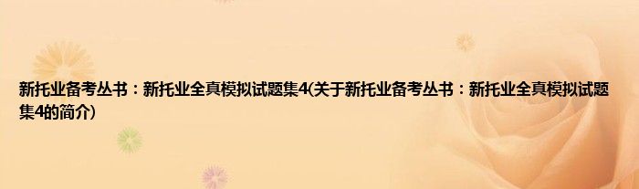 大家好,新托业备考丛书:新托业全真模拟试题集4,关于新托业备考丛书:新托业全真模拟试题集4的简介很多人还不知道,现在让我们一起来看看吧!