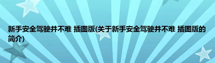 新手安全驾驶并不难 插图版(关于新手安全驾驶并不难 插图版的简介)