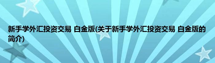 本文关于新手学外汇投资交易 白金版的简介就讲解完毕,希望对大家有所帮助。