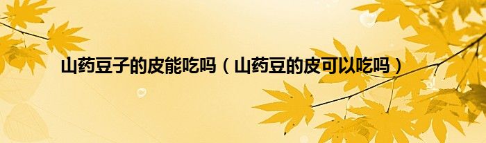山药豆的皮是可以吃的,山药豆的皮和山药豆的皮含有大致相同的营养成分,而且山药豆的皮很薄,非常好嚼,味道也不错,营养成分更容易被肠道吸收。适当吃点山药豆的皮对身体有好处。在吃山药豆皮之前,你应该反复清洗山药豆皮,这样吃起来才健康。