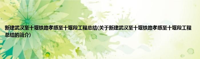 本文关于新建武汉至十堰铁路孝感至十堰段工程总结的简介就讲解完毕,希望对大家有所帮助。