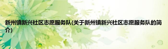 新州镇新兴社区志愿服务队(关于新州镇新兴社区志愿服务队的简介)