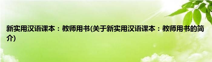 本文关于新实用汉语课本:教师用书的简介就讲解完毕,希望对大家有所帮助。