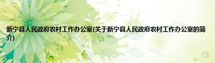 本文关于新宁县人民政府农村工作办公室的简介就讲解完毕,希望对大家有所帮助。