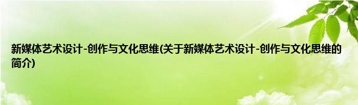 本文关于新媒体艺术设计-创作与文化思维的简介就讲解完毕,希望对大家有所帮助。