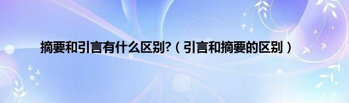 大家好,精选小编来为大家解答以上问题。摘要和引言有什么区别?,引言和摘要的区别很多人还不知道,现在让我们一起来看看吧!