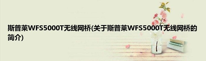 本文关于斯普莱WFS5000T无线网桥的简介就讲解完毕,希望对大家有所帮助。