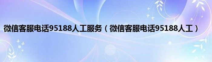 大家好,精选小编来为大家解答以上问题。微信客服电话95188人工服务,微信客服电话95188人工很多人还不知道,现在让我们一起来看看吧!