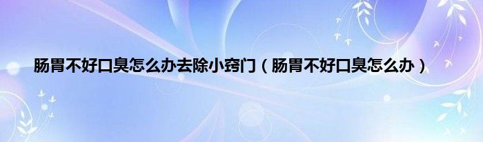 大家好,小科来为大家解答以上问题。肠胃不好口臭怎么办去除小窍门,肠胃不好口臭怎么办很多人还不知道,现在让我们一起来看看吧!