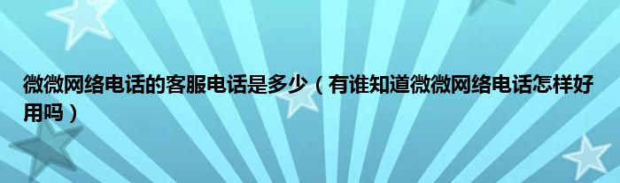 大家好,小常来为大家解答以上问题。微微网络电话的客服电话是多少,有谁知道微微网络电话怎样好用吗很多人还不知道,现在让我们一起来看看吧!