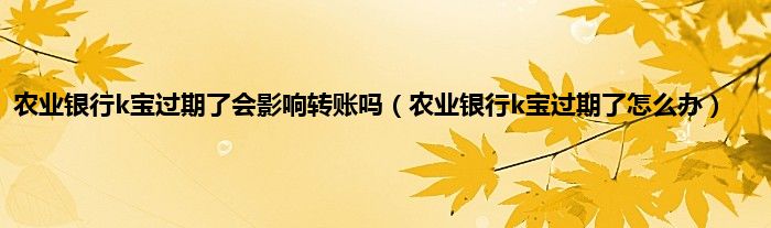 大家好,小常来为大家解答以上问题。农业银行k宝过期了会影响转账吗,农业银行k宝过期了怎么办很多人还不知道,现在让我们一起来看看吧!