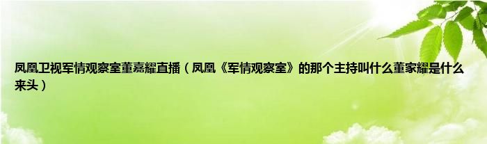 大家好,小常来为大家解答以上问题。凤凰卫视军情观察室董嘉耀直播,凤凰《军情观察室》的那个主持叫什么董家耀是什么来头很多人还不知道,现在让我们一起来看看吧!