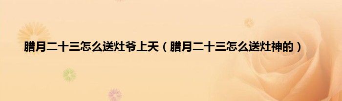大家好,小常来为大家解答以上问题。腊月二十三怎么送灶爷上天,腊月二十三怎么送灶神的很多人还不知道,现在让我们一起来看看吧!