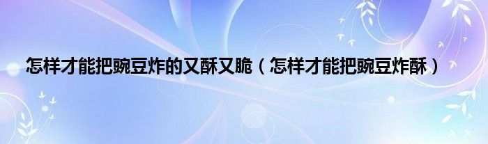 大家好,小常来为大家解答以上问题。怎样才能把豌豆炸的又酥又脆,怎样才能把豌豆炸酥很多人还不知道,现在让我们一起来看看吧!