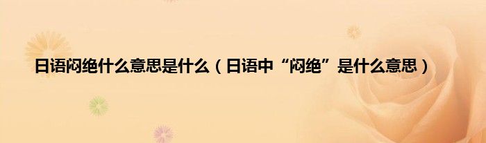 大家好,小常来为大家解答以上问题。日语闷绝什么意思是什么,日语中“闷绝”是什么意思很多人还不知道,现在让我们一起来看看吧!