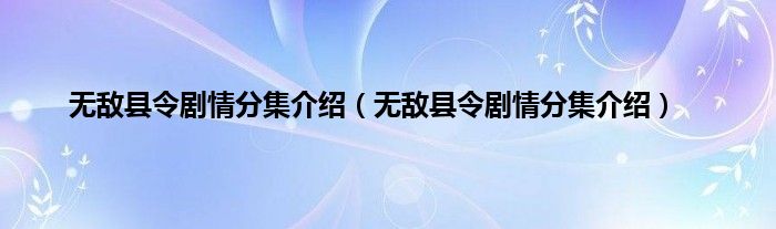 大家好,小常来为大家解答以上问题。无敌县令剧情分集介绍,无敌县令剧情分集介绍很多人还不知道,现在让我们一起来看看吧!