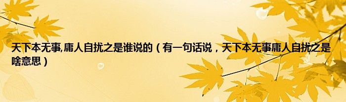 大家好,小常来为大家解答以上问题。天下本无事,庸人自扰之是谁说的,有一句话说,天下本无事庸人自扰之是啥意思很多人还不知道,现在让我们一起来看看吧!
