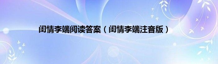 大家好,小常来为大家解答以上问题。闺情李端阅读答案,闺情李端注音版很多人还不知道,现在让我们一起来看看吧!