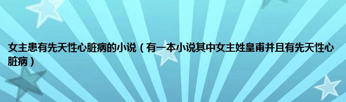 大家好,小常来为大家解答以上问题。女主患有先天性心脏病的小说,有一本小说其中女主姓皇甫并且有先天性心脏病很多人还不知道,现在让我们一起来看看吧!